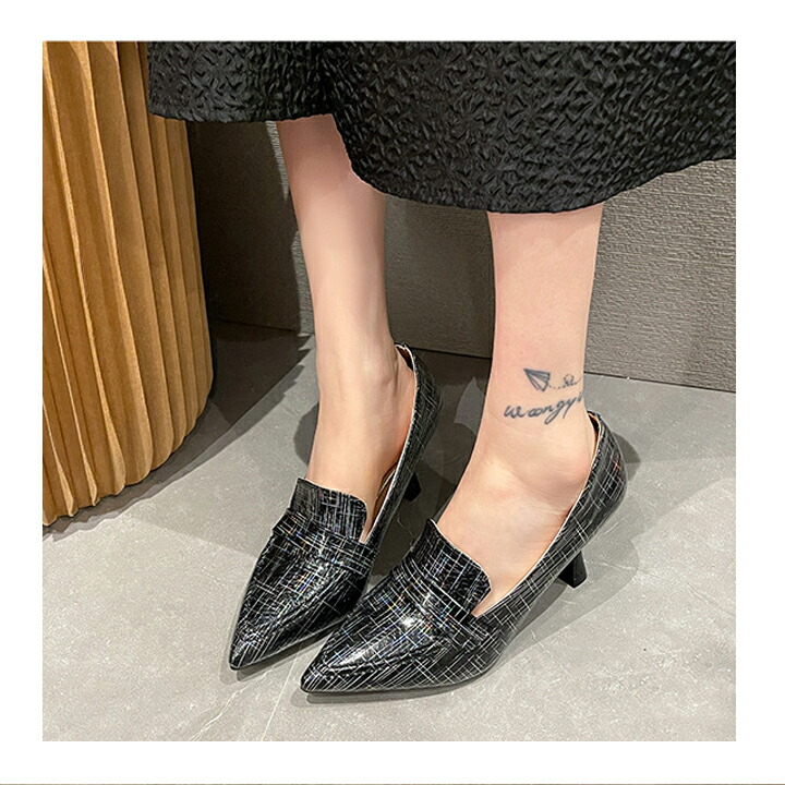 ヒールローファー ヒール パンプス 痛くない ハイヒール 6cm ポインテッドトゥ レディース ツイード
