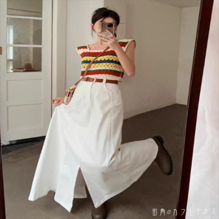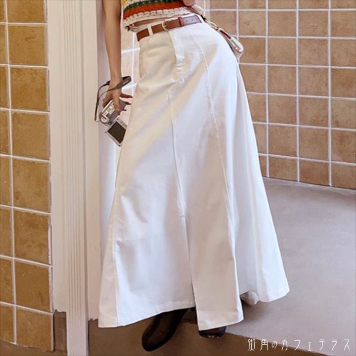 ロングスカート ベイカースカート ロング丈 マキシ丈 フレア Aライン ハイウエスト スリット 薄手 かわいい 大人可愛い きれいめ シンプル カジュアル 大人 上品 おしゃれ お洒落 こなれ感 コンサバ系 ラフ 抜け感 レディライク ガーリー 無地 夏 20代 30代 40代 レディース 女性用 ママ 着回し 普段使い 韓国 オルチャン ファッション コーデ スタイル 体型カバー 定番 プチプラ 着痩せ 垢抜け お出かけ お呼ばれ アウトドア S M 白 ホワイト モノトーン 即納